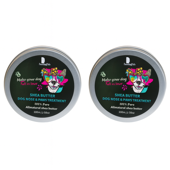 100% grynas, nerafinuotas taukmedžio sviestas, sukurtas šunų sausos, suskeldėjusios nosies ir letenėlių odos priežiūrai.